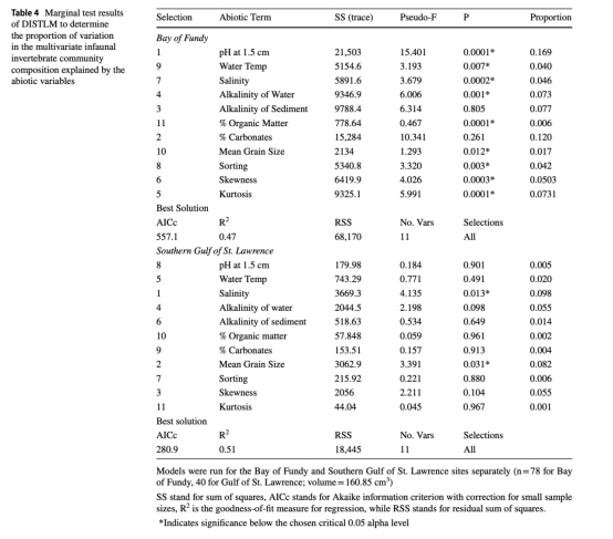 鹽度和沉積物粒度分選性在圣勞倫斯灣南部影響顯著,反映了區域環境差異對生物分布的調控(圖5,表4)。