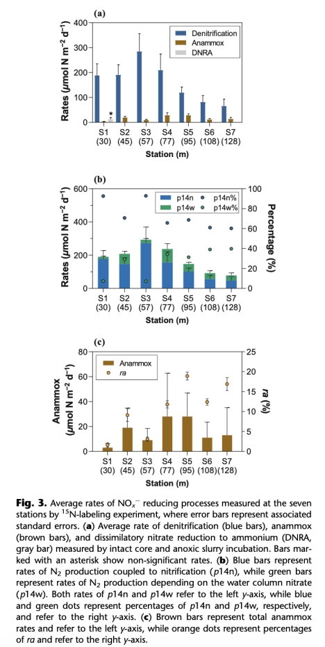 反硝化是寡營養大陸架主要氮去除途徑,厭氧氨氧化貢獻低,DNRA不顯著。