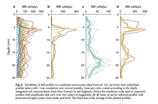 氧化還原趨性模型解釋了MTB在沉積物中的雙峰分布和深度穿梭行為(圖5、6),為MTB生態位分化提供了機制依據。