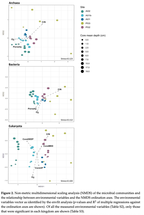 站點位置和核心深度是微生物群落結構的主要驅動因素,分別解釋33%-49%和11%-14%的變異。
