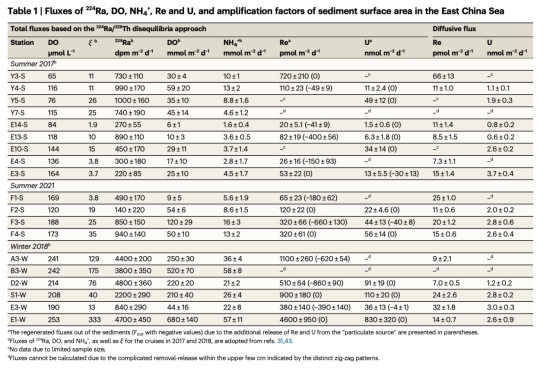 大陸架沉積物Re/U還原去除通量與有機碳分解速率直接相關,冬季強混合促進通量提升3-4倍(表1對比夏冬季數據)。
