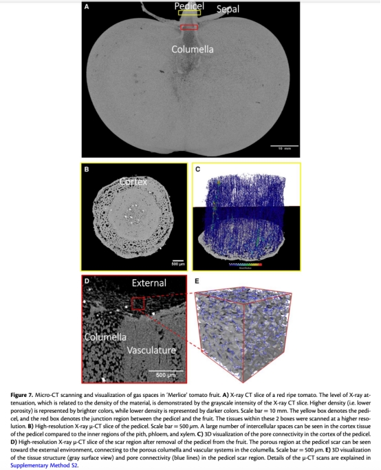 MRI和micro-CT成像數(shù)據(jù)(圖3、7):獲取果實(shí)三維結(jié)構(gòu)和組織孔隙度。意義:構(gòu)建幾何模型并量化擴(kuò)散阻力。