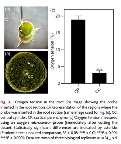 使用Unisense氧氣微傳感器(OXR50-OI)測量根部氧氣濃度(圖3、5),研究意義包括: