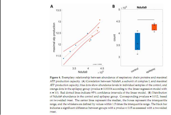 圖表圖4顯示Ndufa9與ATP生產(chǎn)能力的正相關(guān)(p=0.00006);圖6-7顯示人類TLE中ATP合成酶(AT5F1)等蛋白表達(dá)降低。