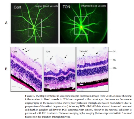 數據:電鏡(TEM)顯示TON導致軸突變性、髓鞘破壞;RIC改善髓鞘完整性(野生型)。