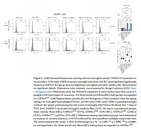 聚焦點:驗證AMPKα1(能量代謝與免疫調節關鍵激酶)在RIC介導的抗炎信號中的作用,尤其是其在骨髓細胞(小膠質細胞/巨噬細胞)中的功能。