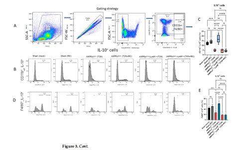 數據:流式細胞術顯示RIC降低CD11b+CD68+(M1型),增加CD11b+CD206+(M2型)和IL-10+細胞(野生型)。