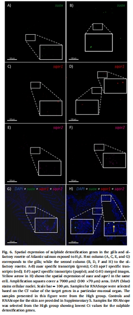 空間定位:RNAScope原位雜交硫解毒基因(sqor1, sqor2, suox)(圖6)。