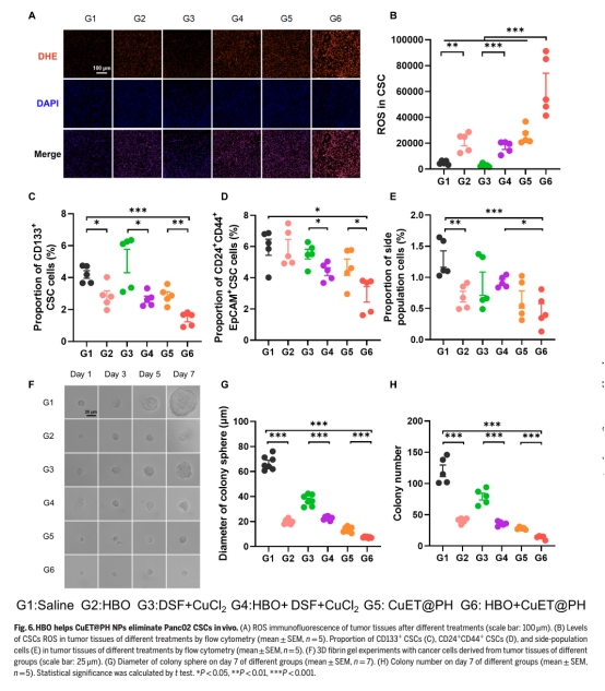 HBO使CuET@PH NPs腫瘤蓄積提升2.58倍,CSCs內(nèi)ROS增加12.79倍(圖6B如下)。