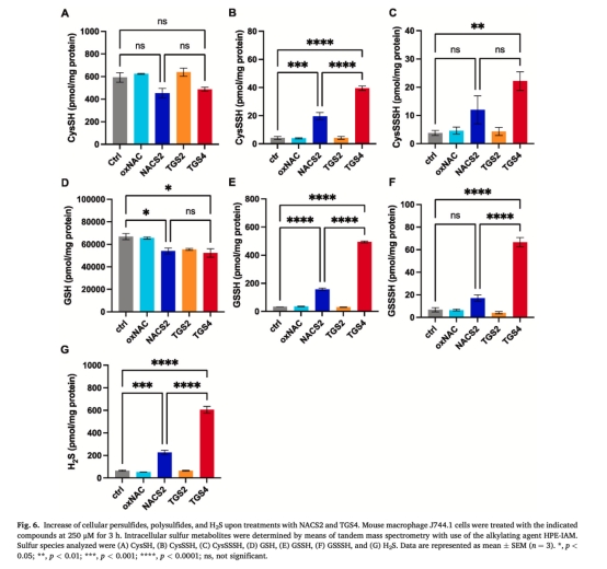 數據:LC-MS/MS定量分析TGS4處理的細胞中硫代謝物(如CysSSH、CysSSSH、GSSH、GSSSH、H?S)水平變化。