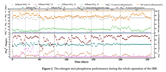 數(shù)據(jù)來源:圖2(長期氮磷去除性能)、表2(不同階段去除率)、圖3-5(典型周期動態(tài))。