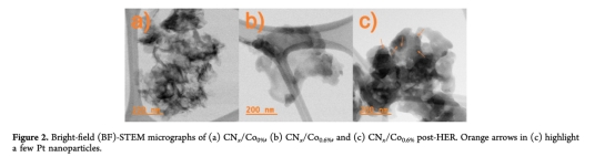 研究意義:確認CNx基本結構未被鈷負載破壞(圖1a);揭示鈷的引入降低了CNx結晶度(圖1b,);證明鈷以混合價態(Co2?/Co3?)氧化物形式高度分散在CNx表面;量化實際鈷負載量;證實HER后鉑成功光沉積及鈷的部分溶出/價態變化。