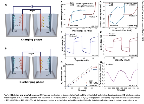 成功開發(fā)無膜解耦電解槽,通過電容機制實現(xiàn)氫氧時空分離,適應(yīng)酸/堿環(huán)境。