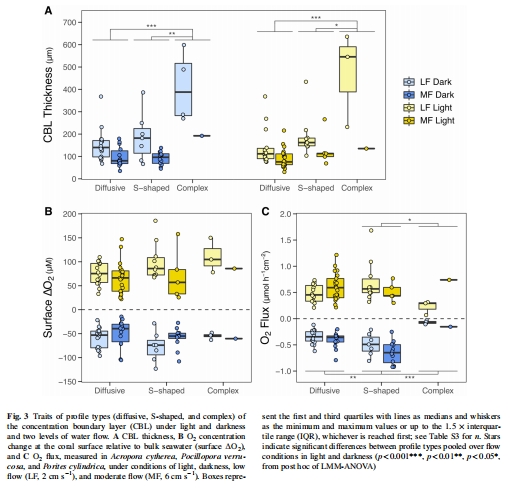 表征CBL內氧濃度梯度的結構類型及其對水流和光照的響應。