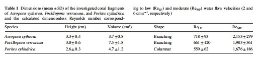 數據來源:表1(珊瑚碎片尺寸與雷諾數)、圖1-3