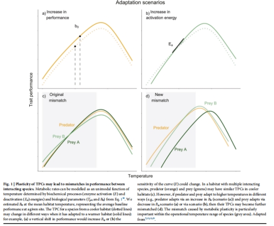 物種特異的代謝可塑性導致其運動速度的溫度依賴性出現錯配(mismatch);
