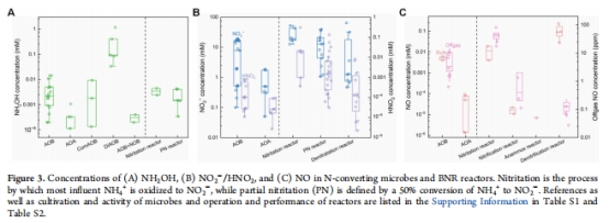 數(shù)據(jù)來源:圖3A-C匯總了純菌培養(yǎng)與BNR反應(yīng)器中RNI的實測濃度。
