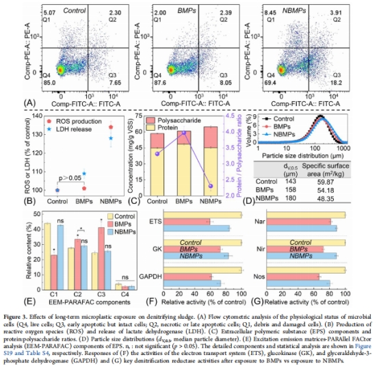 BMPs:降低反硝化菌豐度及電子傳遞與消耗系統(ETCS)關鍵基因表達,與胞外聚合物(EPS)成分改變相關。