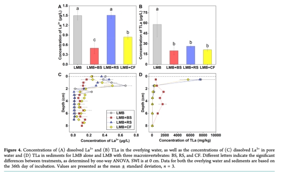 鑭改性膨潤土(LMB)與不同生物擾動模式的底棲大型無脊椎動物之間的相互作用