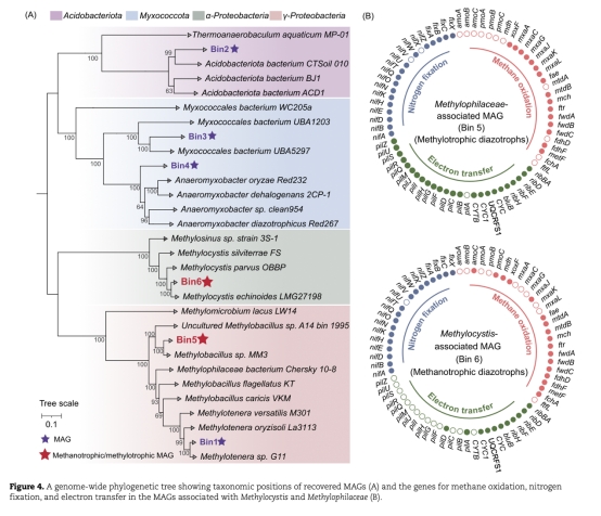 DNA穩定同位素示蹤(DNA-SIP)表明Methylocystis、Methylophilaceae和Methylomicrobium是主導的甲烷氧化菌/甲基營養菌。