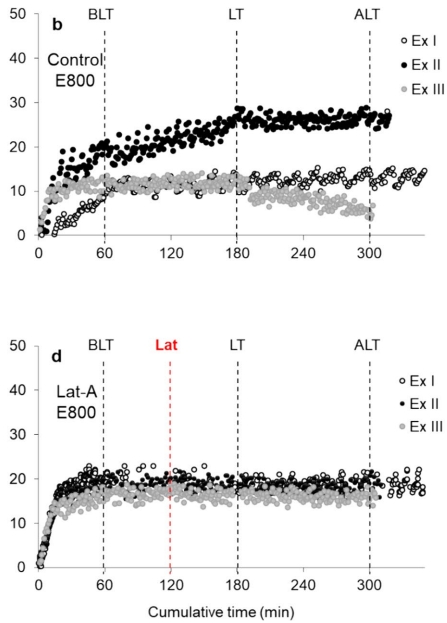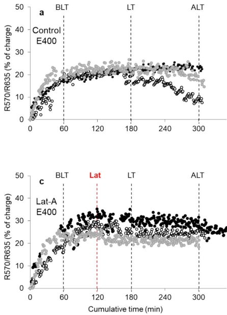 設置對照組(Control)和運動抑制組(Lat-A處理),在模擬潮汐暴露期(6 h)施加兩種光照(400/800 μmol photons m?2 s?1)。