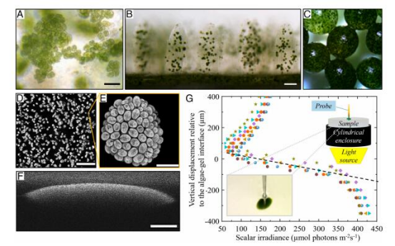 標題:Light management by algal aggregates in living photosynthetic hydrogels