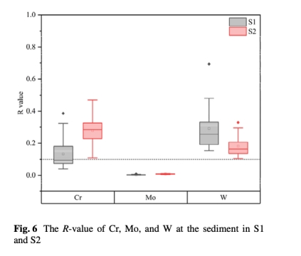 R值揭示Mo因形成穩定硫代鉬酸鹽絡合物(如MoS?2?與黃鐵礦結合),沉積物固相對孔隙水的補給能力最弱(圖6)