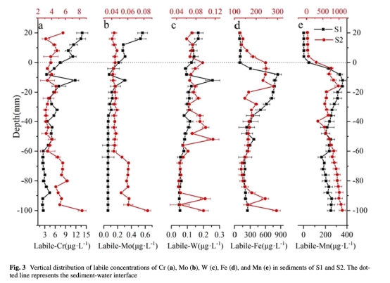 獲取Cr、Mo、W在沉積物-水界面的溶解態(HR-Peeper)和有效態(DGT)濃度垂直分布特征