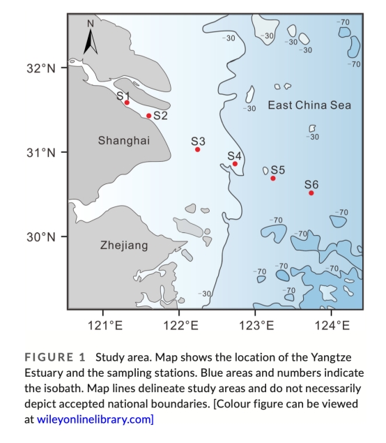 在長江口至鄰近海域設置鹽度梯度站點(圖1),采集底棲水體樣本。