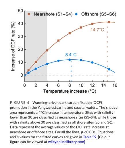Potential response of dark carbon fixation to global warming in estuarine and coastal waters