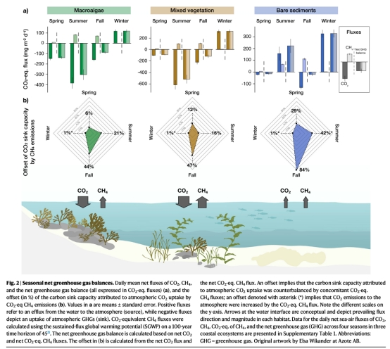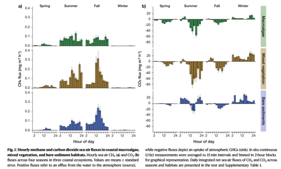 海岸帶大型藻類、混合植被和沉積物生態系統中甲烷排放抵消大氣二氧化碳吸收