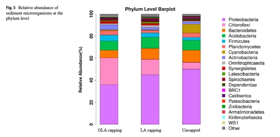 微生物調控:OLA覆蓋降低變形菌門(Proteobacteria)和藍藻(Cyanobacteria)豐度,提升綠彎菌門(Chloroflexi)豐度(圖5),促進有機磷(OP)向穩定形態轉化(圖4)。