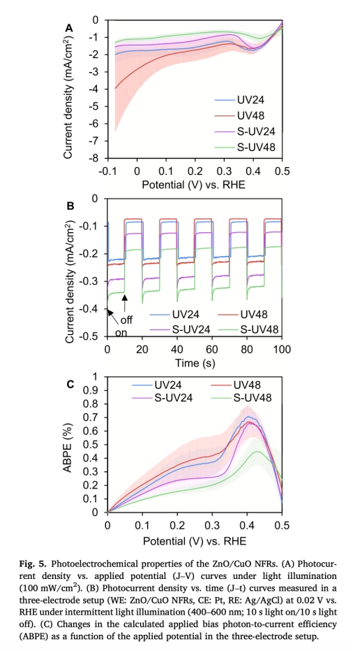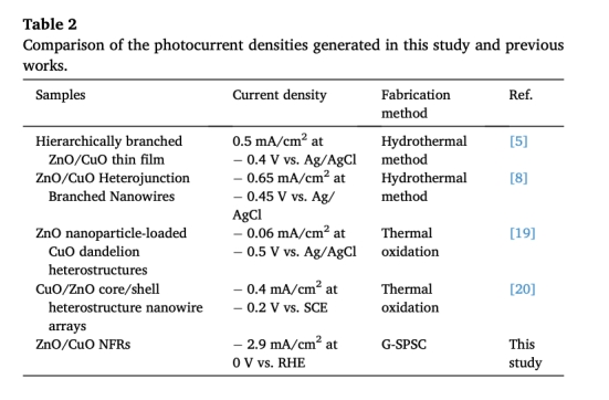 意義:證實G-SPSC法制備的ZnO/CuO NFRs具有優異的光電轉換能力,省略濺射步驟仍保持高性能,為綠色合成提供新策略。
