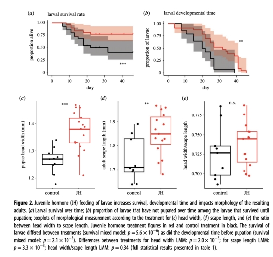 意義:JH可增大體型但未改變工蟻品級(caste)特征(如兵蟻比例),提示體型調控獨立于品級分化。