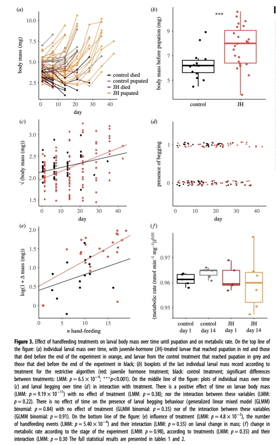 代謝率(圖3f, 表2):JH處理未顯著改變幼蟲耗氧率(代謝率)。