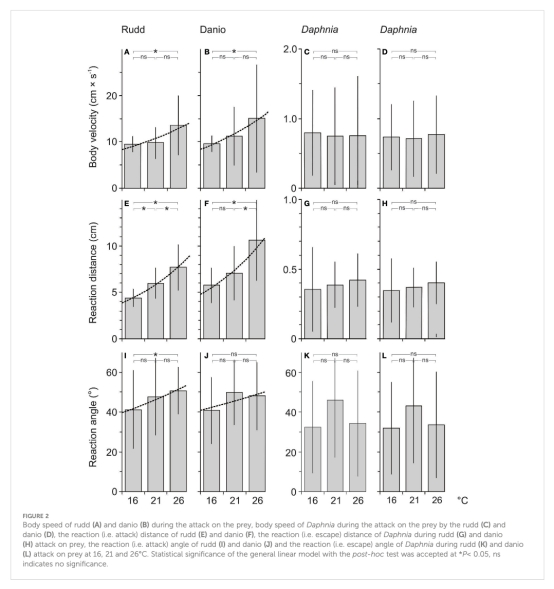 行為機制驅動捕食率升高:溫度升高顯著提升魚類的攻擊行為參數: