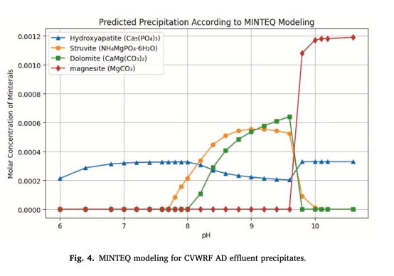 MINTEQ模型預(yù)測(cè)pH 8.5-9.5時(shí)鳥糞石沉淀量最大(圖4)。