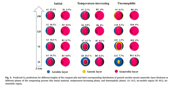 發(fā)現(xiàn)表層氧濃度(C_{O2,S})需>10%才能消除高溫期厭氧層,為通風(fēng)系統(tǒng)設(shè)計(如變頻風(fēng)機控制)提供定量標(biāo)準(zhǔn)。