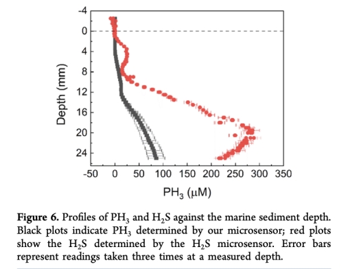 沉積物剖面數據(圖6)揭示PH?在13 mm深度突增(100 μmol·L?1),結合H?S分布驗證傳感器在硫-磷耦合循環研究中的實用性,填補傳統破壞性采樣(如提取法)的空間分辨率缺陷。