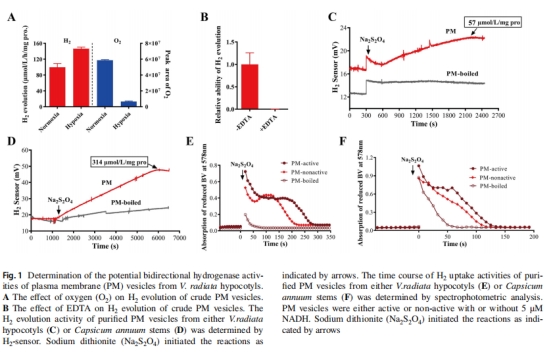 核心發(fā)現(xiàn):首次在高等植物(綠豆和辣椒)的質(zhì)膜(PM)中發(fā)現(xiàn)雙向氫酶活性,包括: