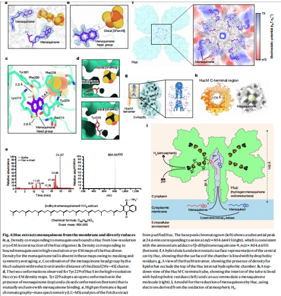 甲萘醌(E°=-74 mV)為最佳電子受體(圖1d),支持Huc-MQ直接偶聯模型(圖4i)。