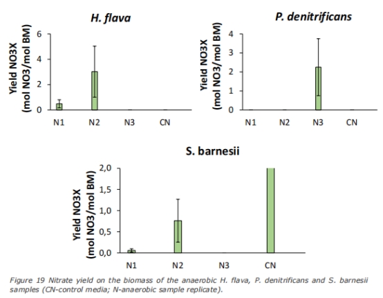 硝酸鹽/銨產率 圖19(YNO3/X)、圖20(YNH4/X) 量化無氧呼吸效率及氮同化能力。數據離散大(如H. flava YNO3/X 0.49–3.02 mol/mol),可靠性低。