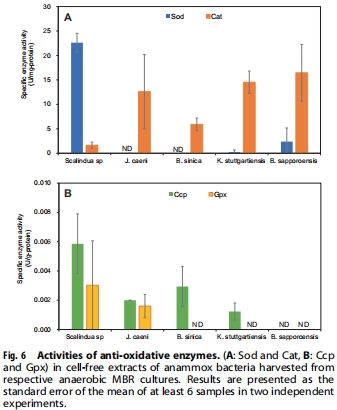 SOD活性 圖6A Scalindua的Sod活性(22.6 U/mg)為淡水種的10倍以上,直接關聯高氧耐受性