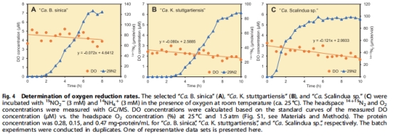 測定Scalindua的氧還原速率(0.26 μmol O?/g-protein/h)。