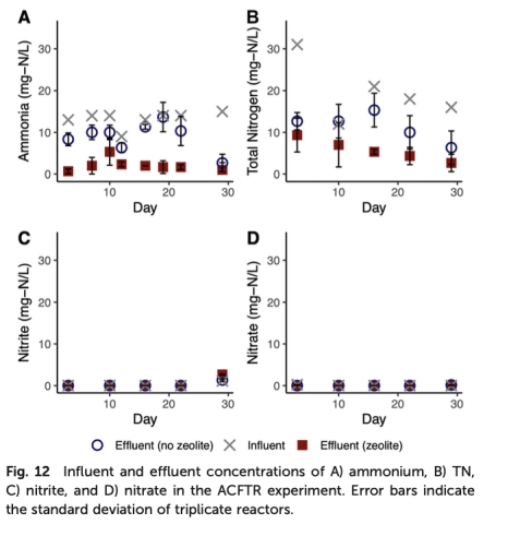 沸石通過吸附銨形成局部高濃度區域,促進Anammox菌定植,且吸附的銨可被微生物利用(圖8)。
