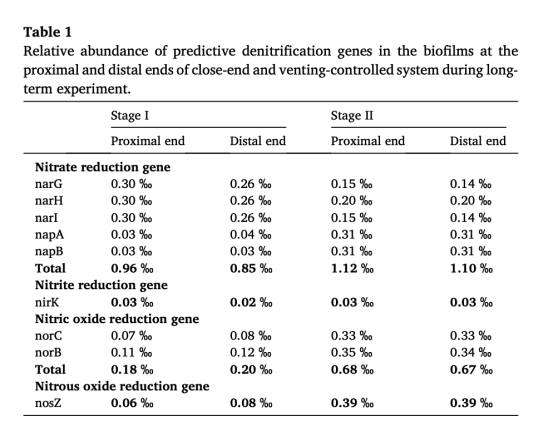 長期實驗:比較周期性排氣(30秒排氣/17分鐘間隔)與封閉式操作的性能差異,結合生物膜厚度、微生物群落和功能基因分析機制。
