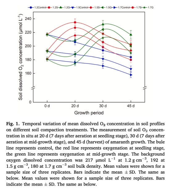 數據:Unisense微電極原位監測顯示,生長期增氧使1.5 g cm?3土壤氧濃度從166升至199 μmol L?1。