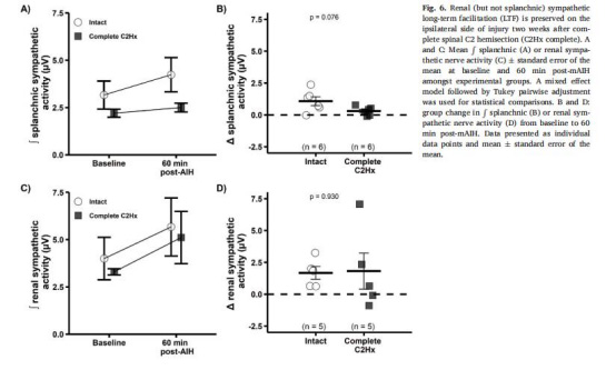 交感神經(jīng)可塑性差異:完全性C2Hx后,內臟交感神經(jīng)(splanchnic)sympLTF消失,但腎交感神經(jīng)(renal)sympLTF保留。