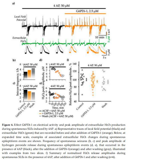 G6PDi-1不改變自發性癲癇樣事件(SLEs)頻率,但降低癲癇發作期間的H?O?釋放峰值振幅(圖6)。