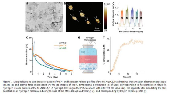 關(guān)鍵數(shù)據(jù):pH 5.0環(huán)境下,MSN@CS/HA的氫釋放速率比pH 8.0時快1.8倍,但仍維持>6天的持續(xù)釋放(圖1d),證明其對傷口pH動態(tài)變化的適應(yīng)性。